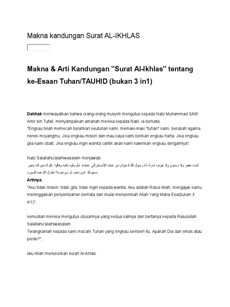 Surah Al Ikhlas Dan Makna