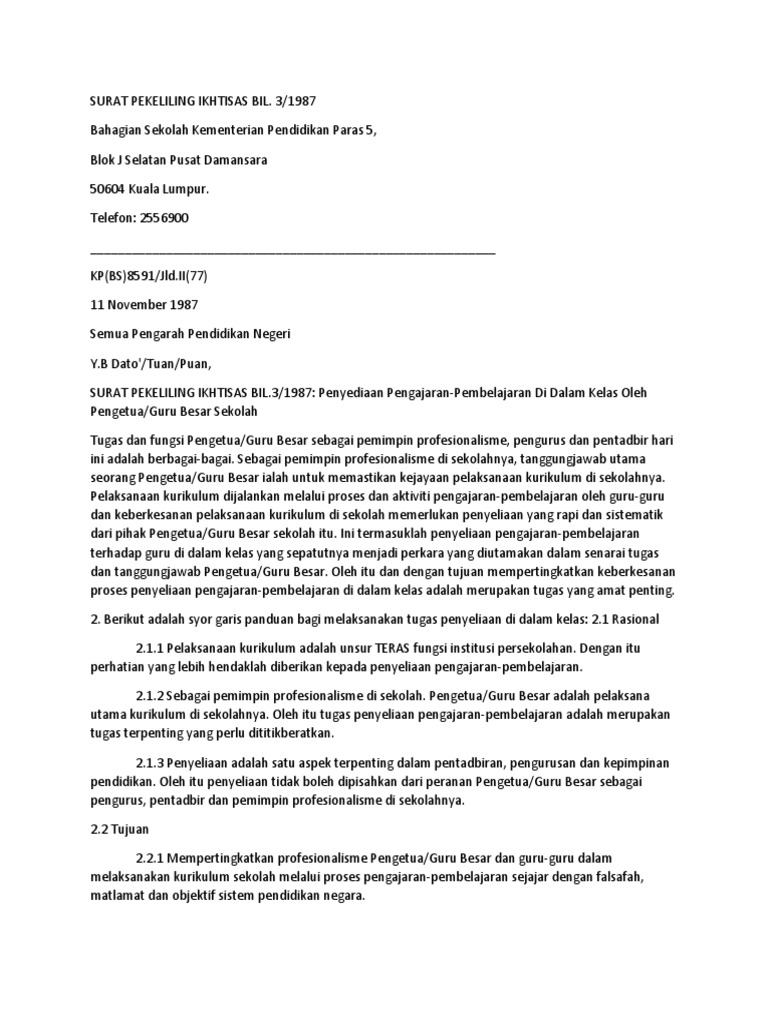 Surat Pekeliling Ikhtisas Bil 3 1987 Pdf Document