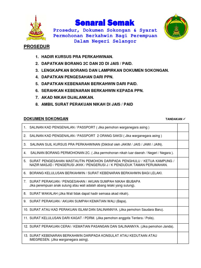 Senarai Semak Permohonan Berkahwin Ncr Jais Gov My Images Senaraisemakperm Senarai Semak Permohonan Berkahwin Negeri Selangor Perempuan Prosedur 1 Hadir Kursus Pra Perkahwinan