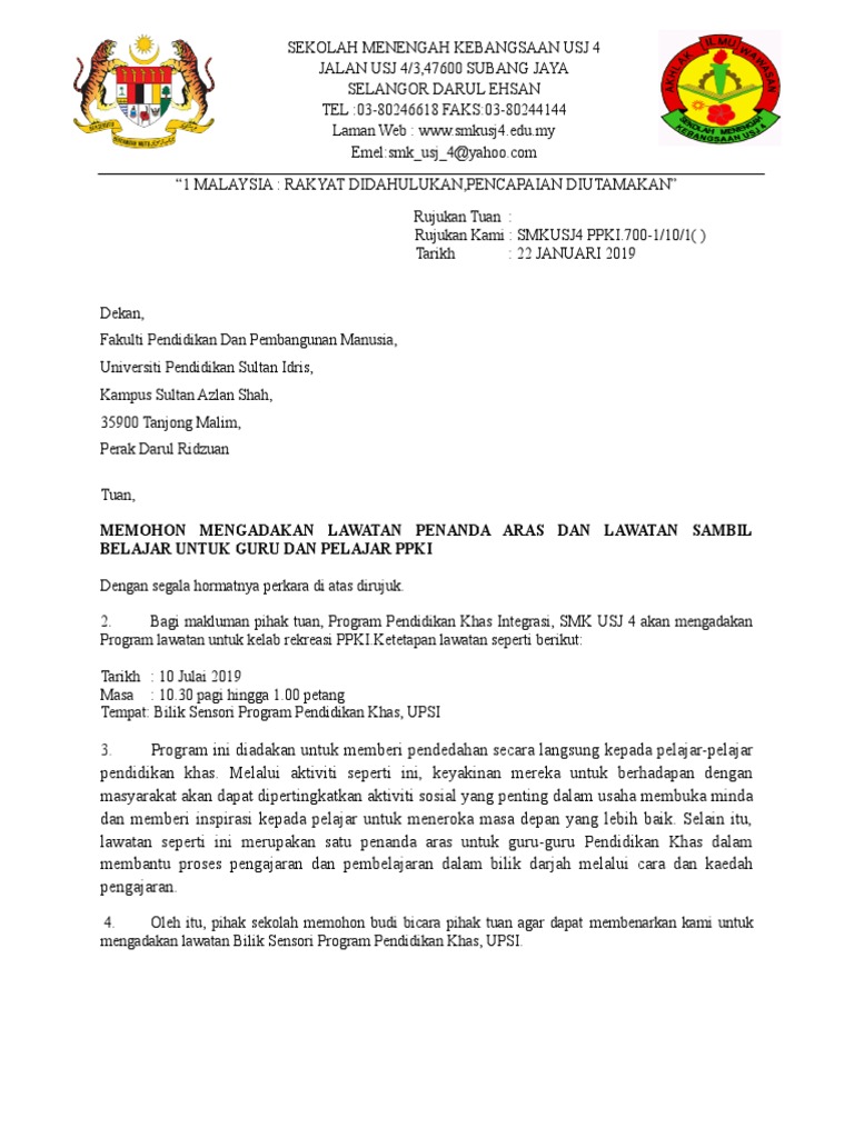 Contoh Surat Rasmi Lawatan Penanda Aras Surat Rasmi I