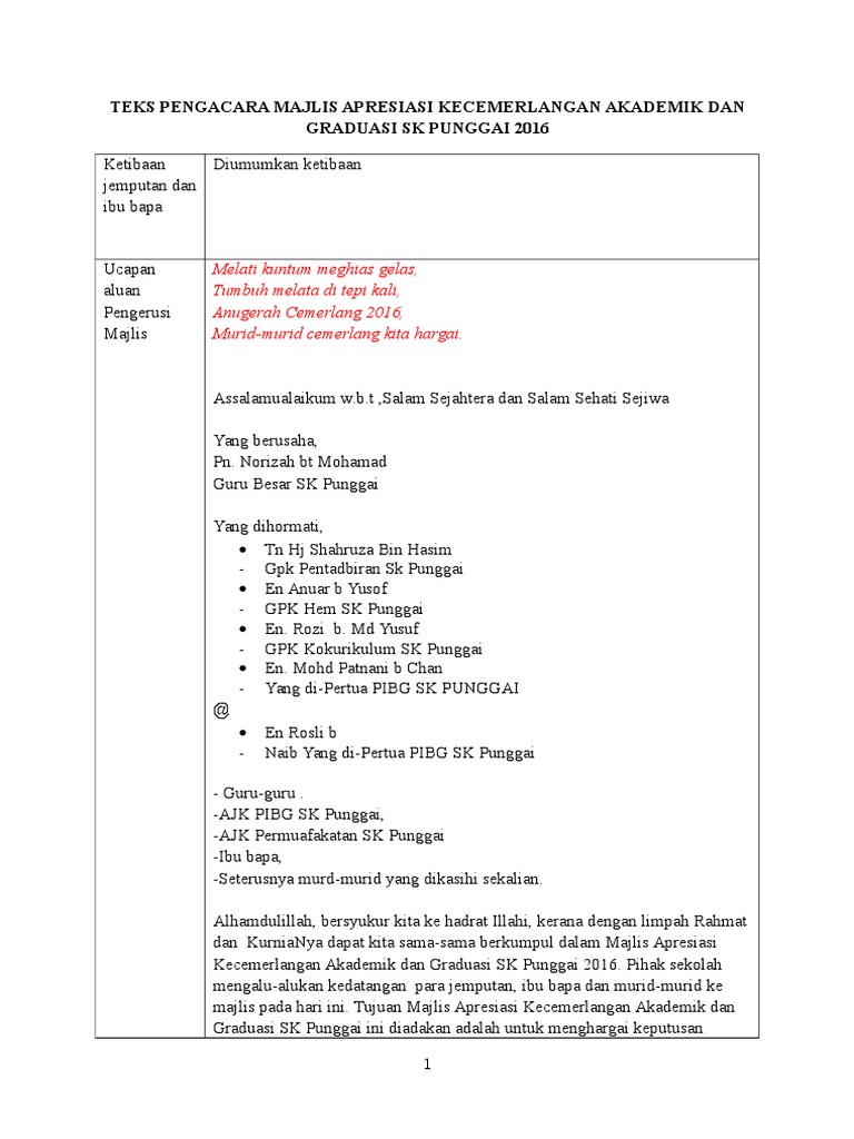 Search Teks Mc Majlis Anugerah Kecemerlangan Murid Dan Konvokesyen Prasekolah Docx Slideus Org