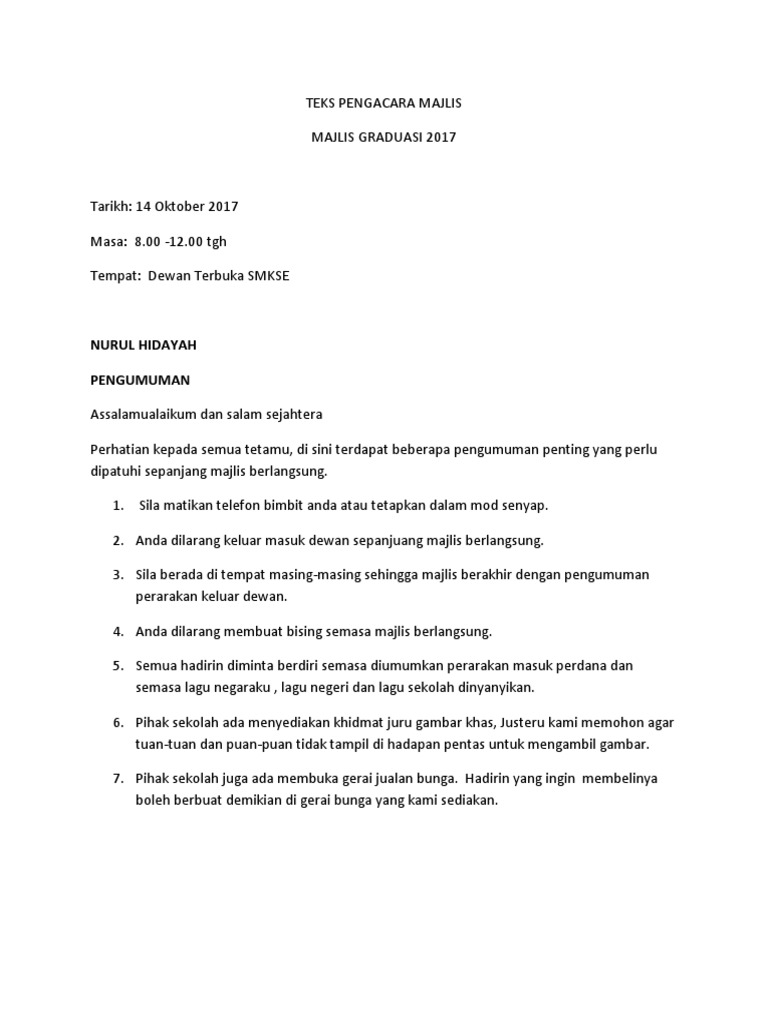 Ppt Teks Majlis Graduasi Kemas Parlimen Paya Besar Mas Maria Academia Edu