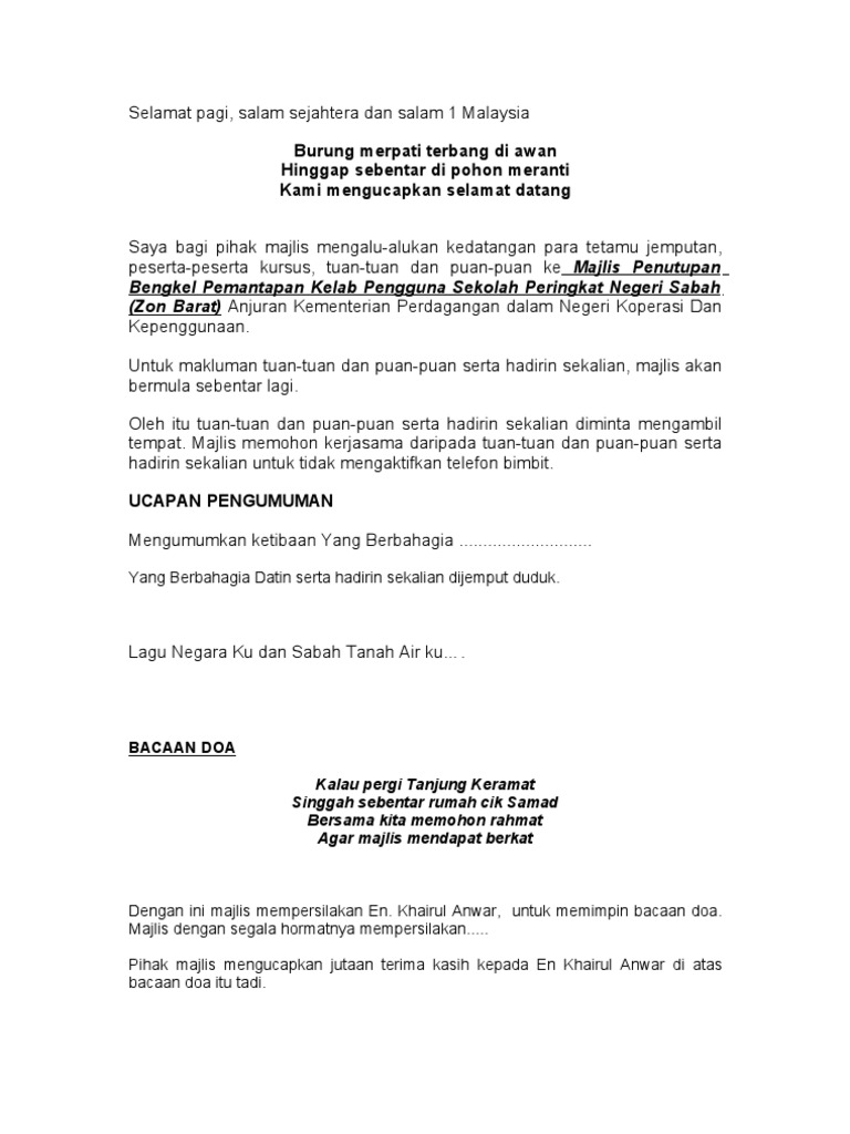 Teks Ucapan Pengacara Majlis