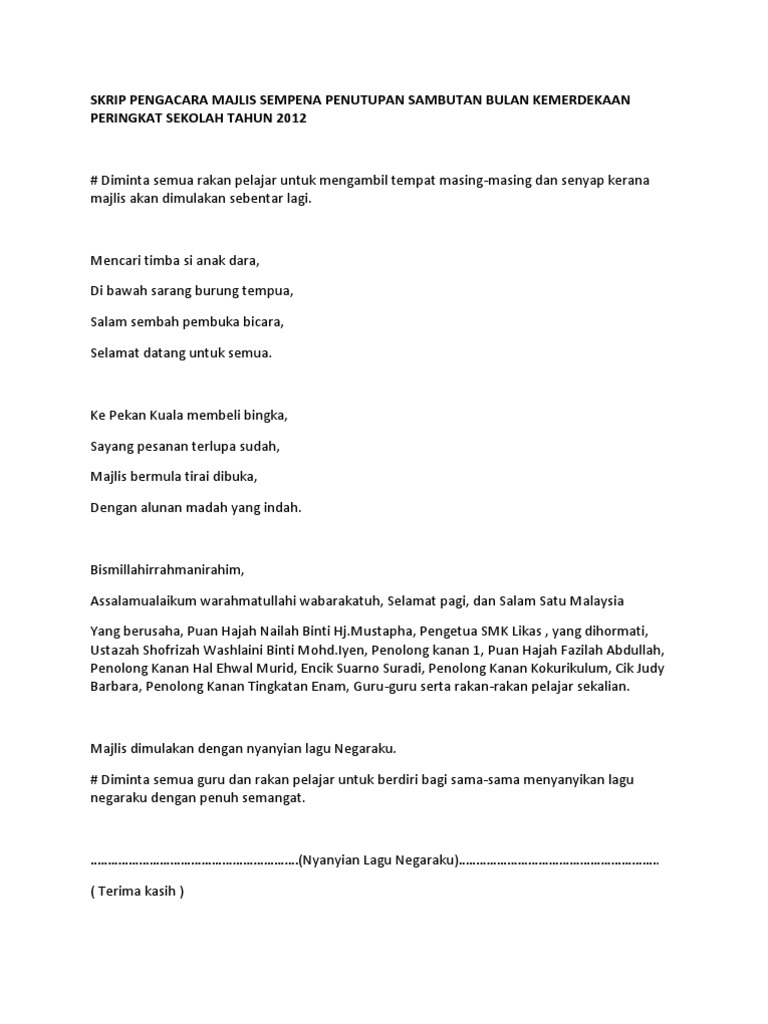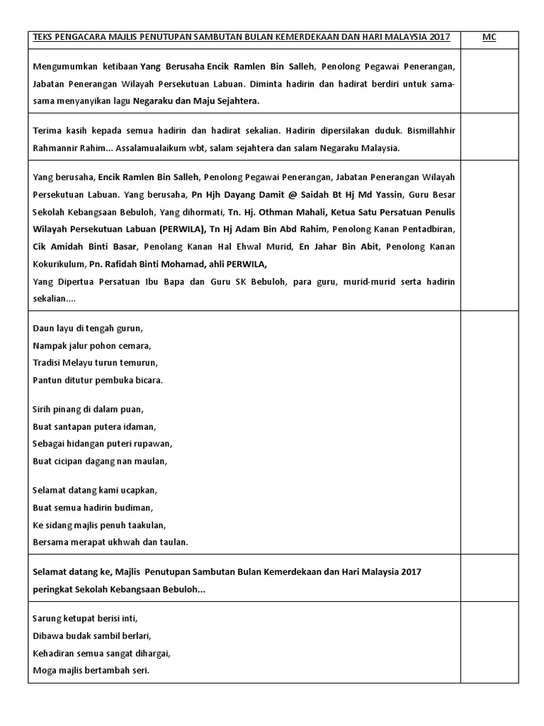 Teks Mc Majlis Penutupan Bulan Kemerdekaan 2015 Doc