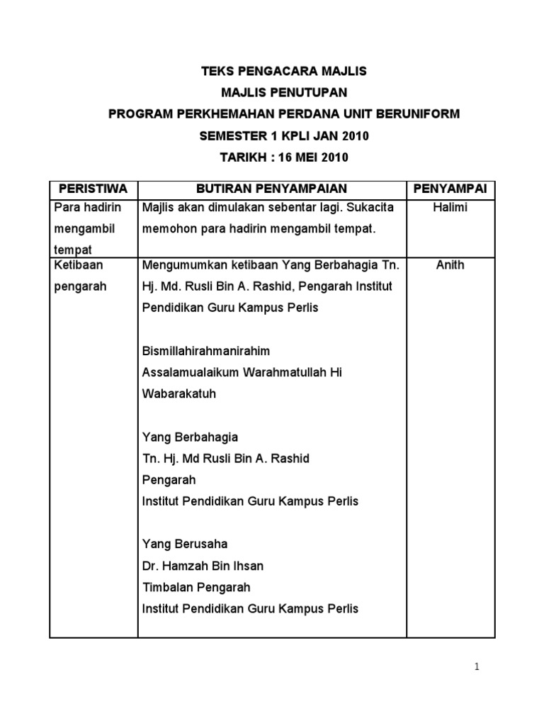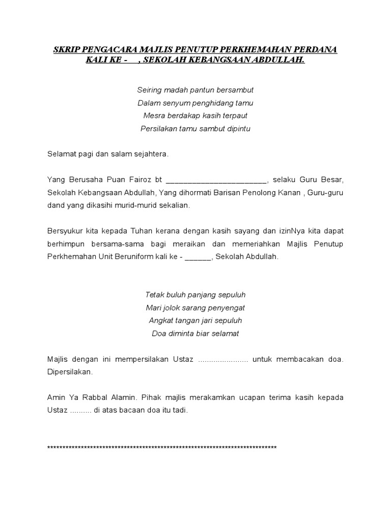 Teks Pengacara Majlis Perasmian Penutupan Perkhemahan Badan Unit Beruniform Pdf Document