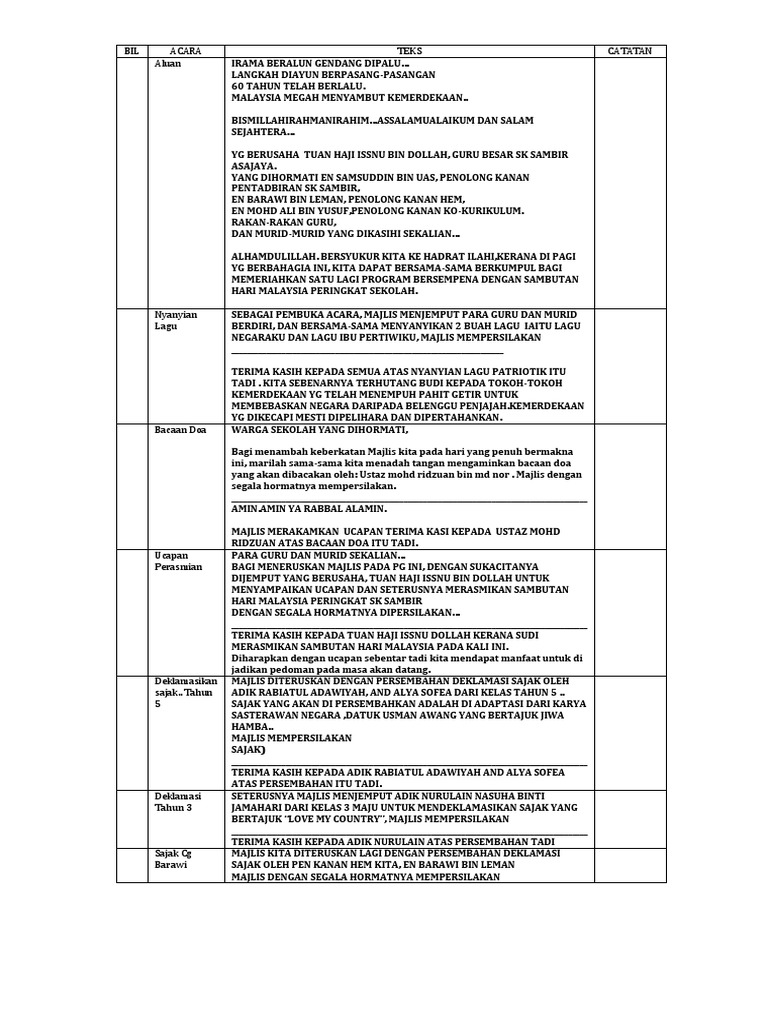 Doc Teks Pengacara Majlis Sambutan Bulan Kemerdekaan Anisa Syahida Academia Edu