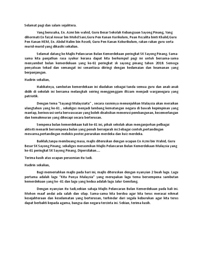 Teks Ucapan Bulan Kemerdekaan Doc
