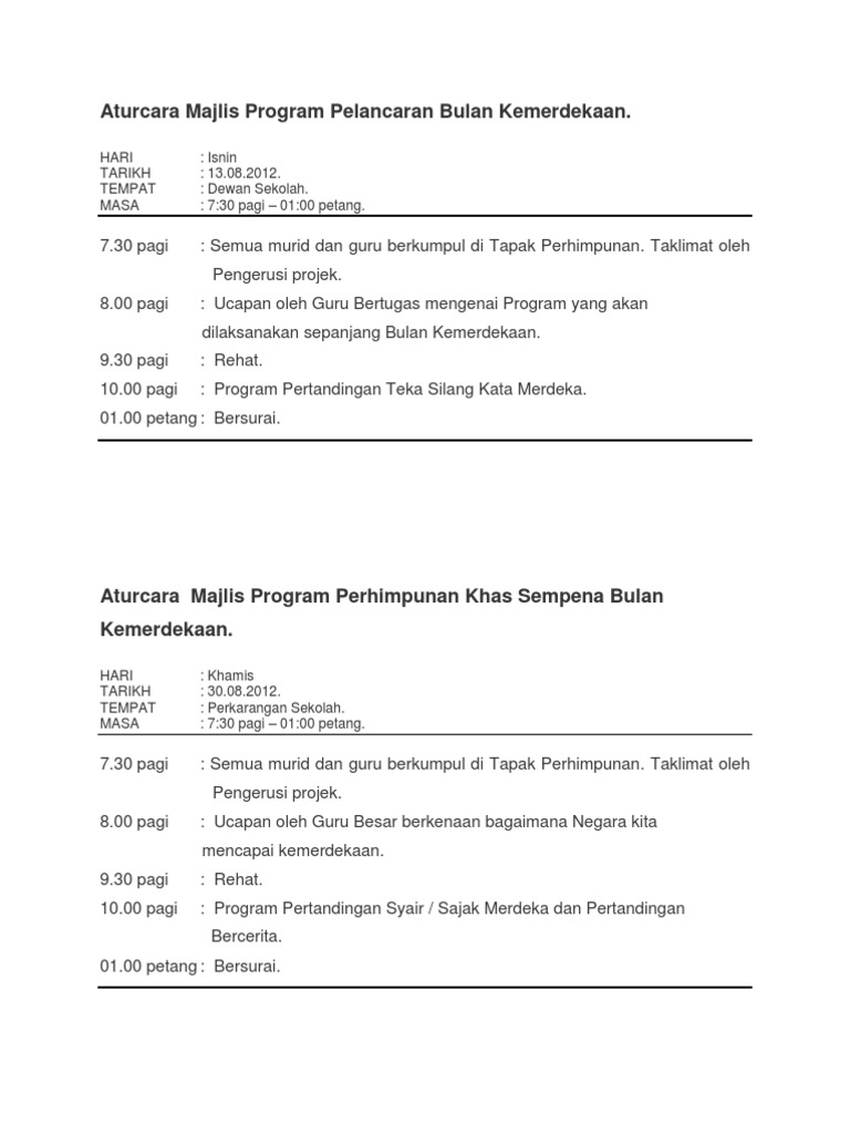 Aturcara Majlis Program Pelancaran Bulan Kemerdekaan