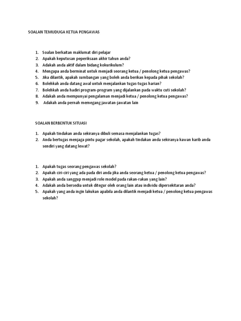 Soalan Temuduga Ketua Pengawas