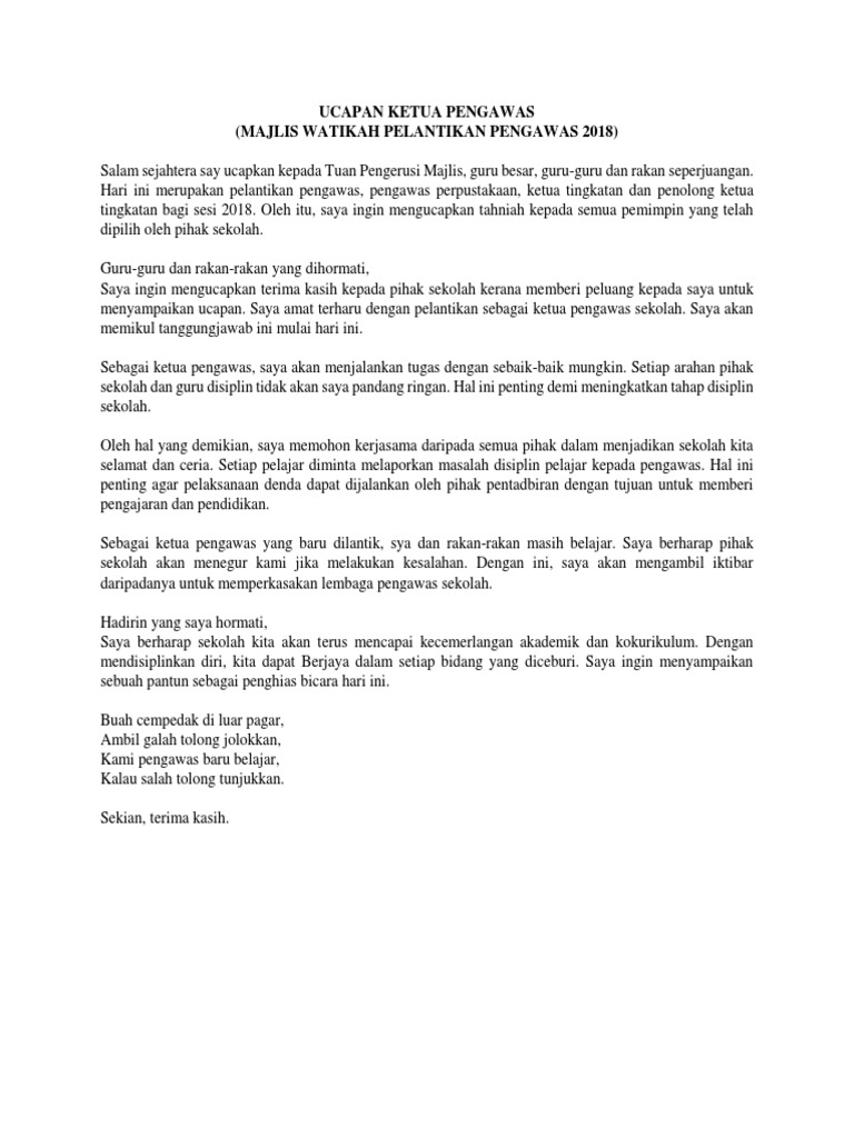 Teks Ucapan Ketua Pengawas Docx Document