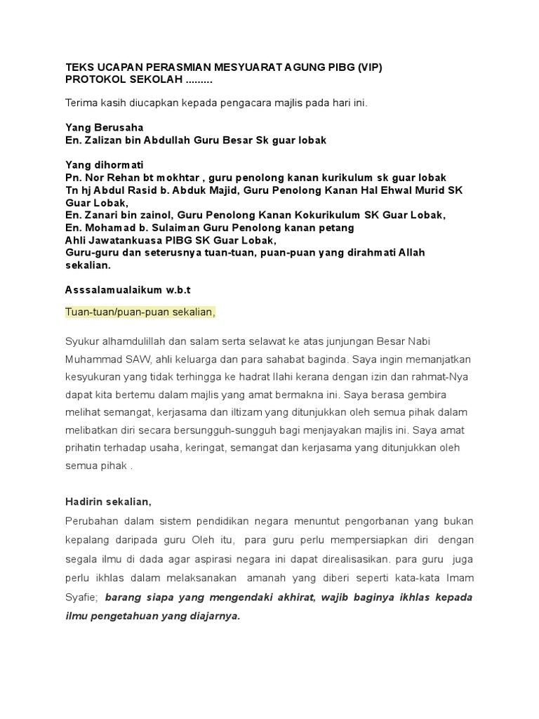 Teks Ucapan Ydp Pibg Sempena Mesyuarat Agung Pibg Smk Pernu Kali Ke 50 2019