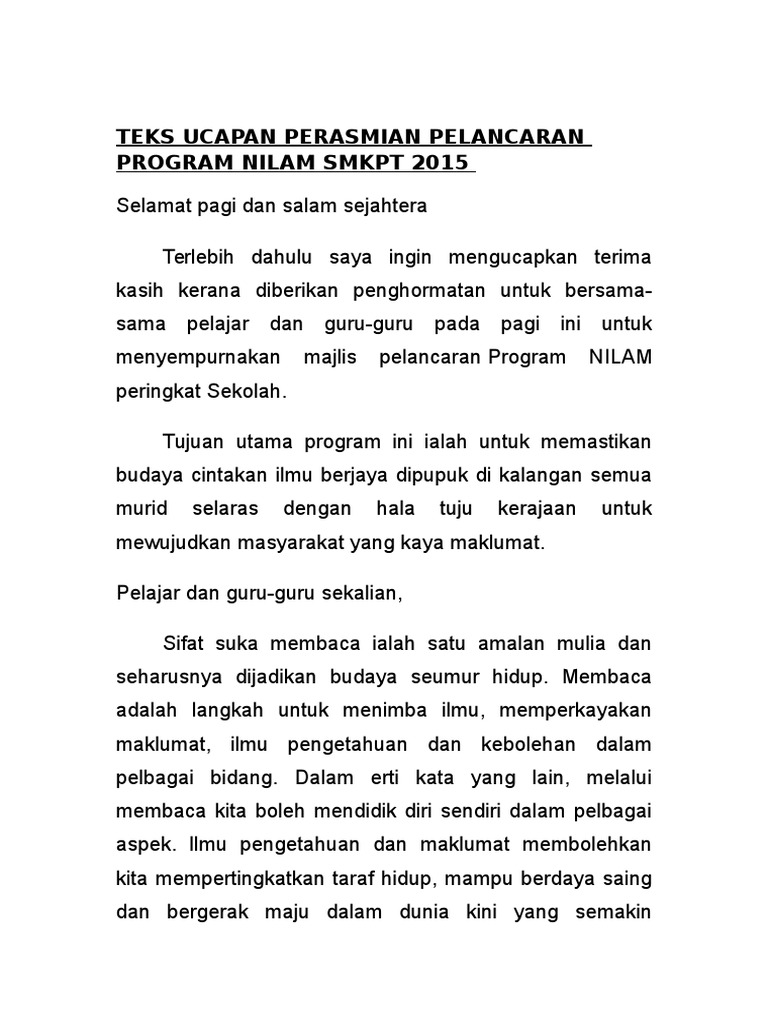 Teks Ucapan Majlis Pelancaran Program Kem Membaca 1 Malaysia Hip Docx