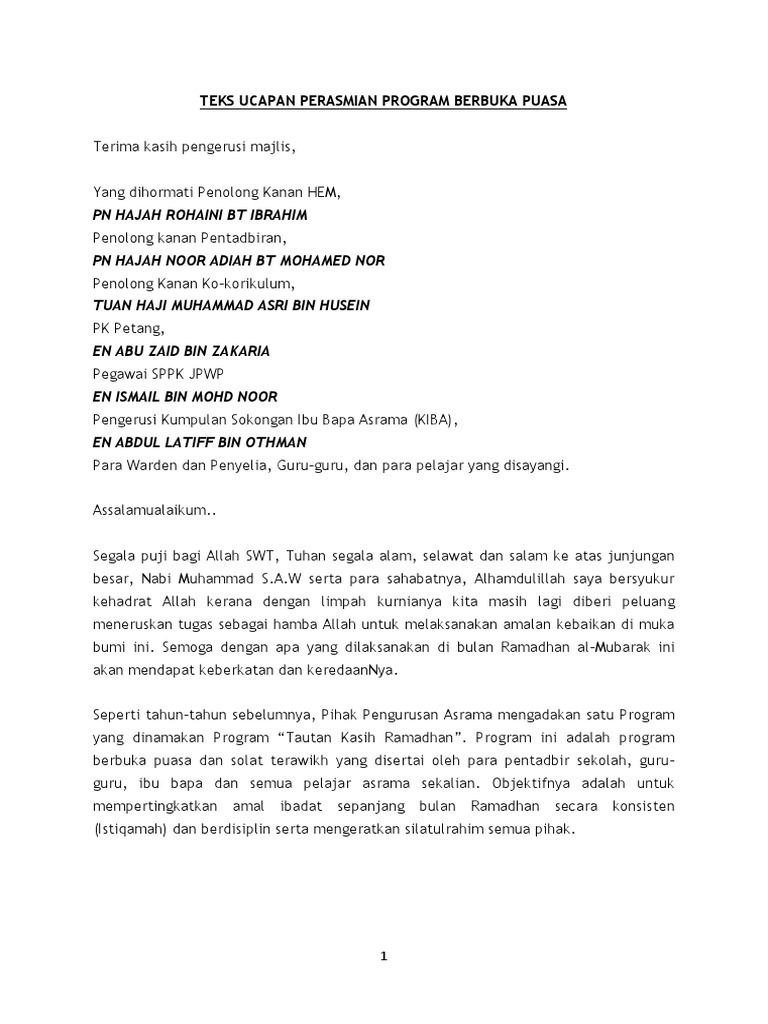 Teks Ucapan Perasmian Program Berbuka Puasa