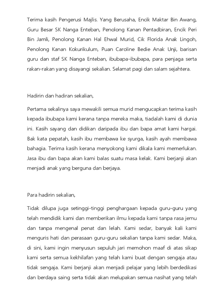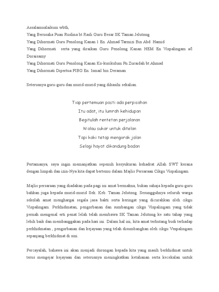 Doc Contoh Ucapan Wakil Murid Untuk Majlis Persaraan Linda Husin Academia Edu