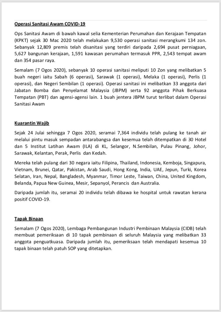 Bernama Tv On Twitter Kenyataan Akhbar Berkenaan Perkembangan Terkini Pkp Pkpp Pada 8 Ogos 2020