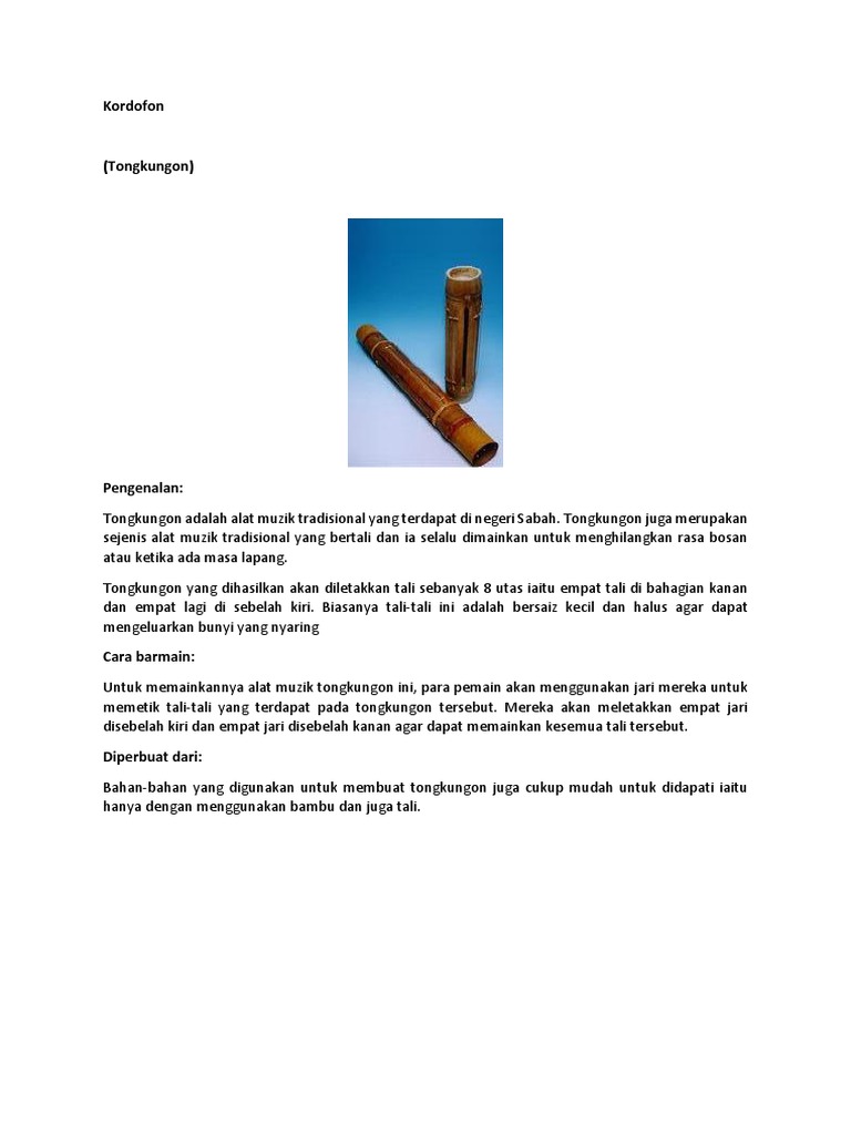 Tahun 6 Bahasa Malaysia Seni Tradisi Kebanggaan Kita Alat Muzik Tradisional Sabah Tongkungon