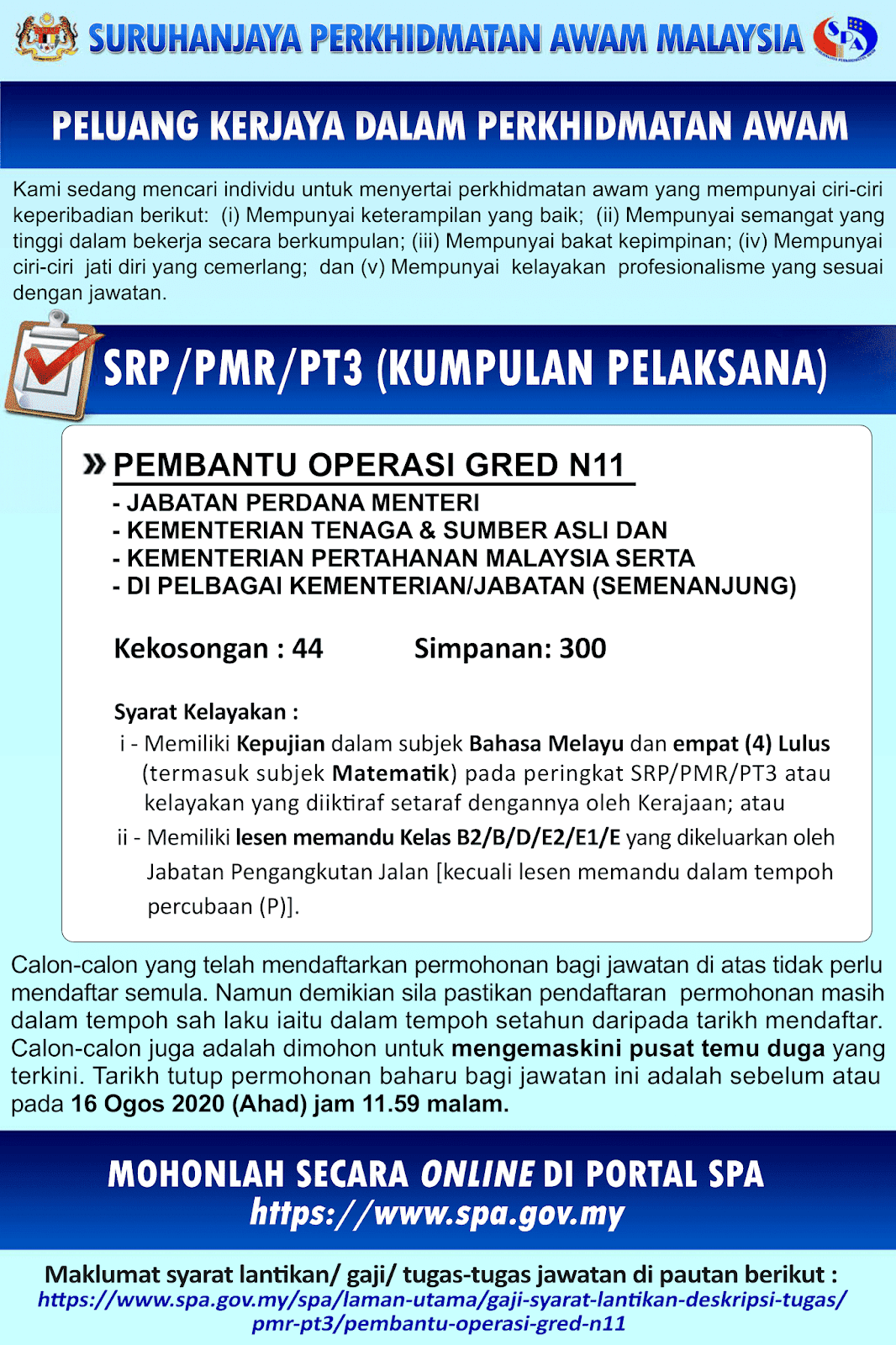 Jawatan Kosong Pembantu Operasi Gred N11 Kemaskini April 2018