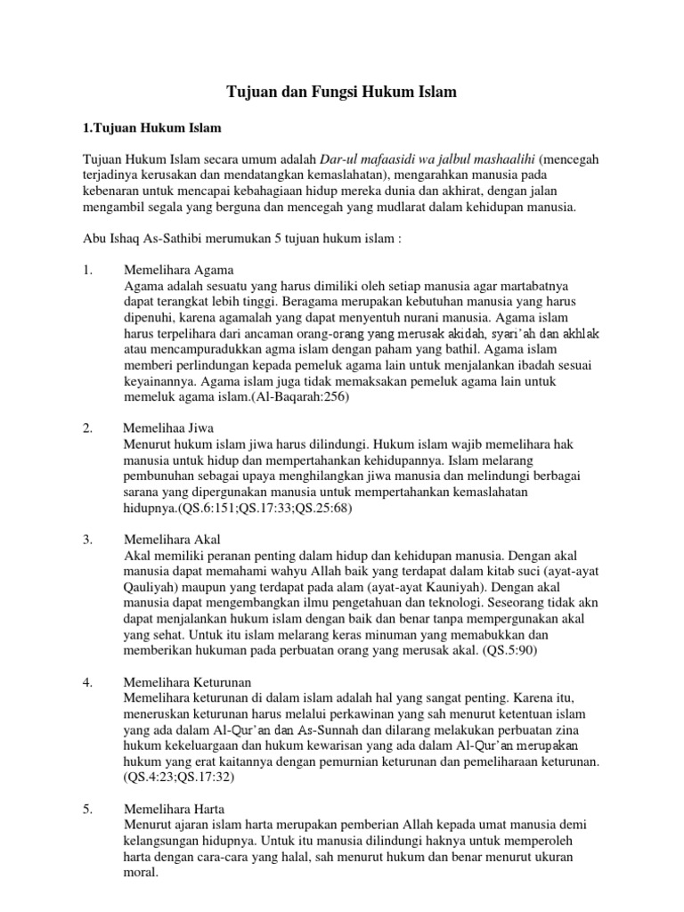 Tujuan Dan Fungsi Hukum Islam