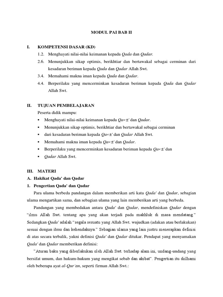 Doc Pengertian Iman Kepada Qada Dan Qadar Boim Mesin Academia Edu