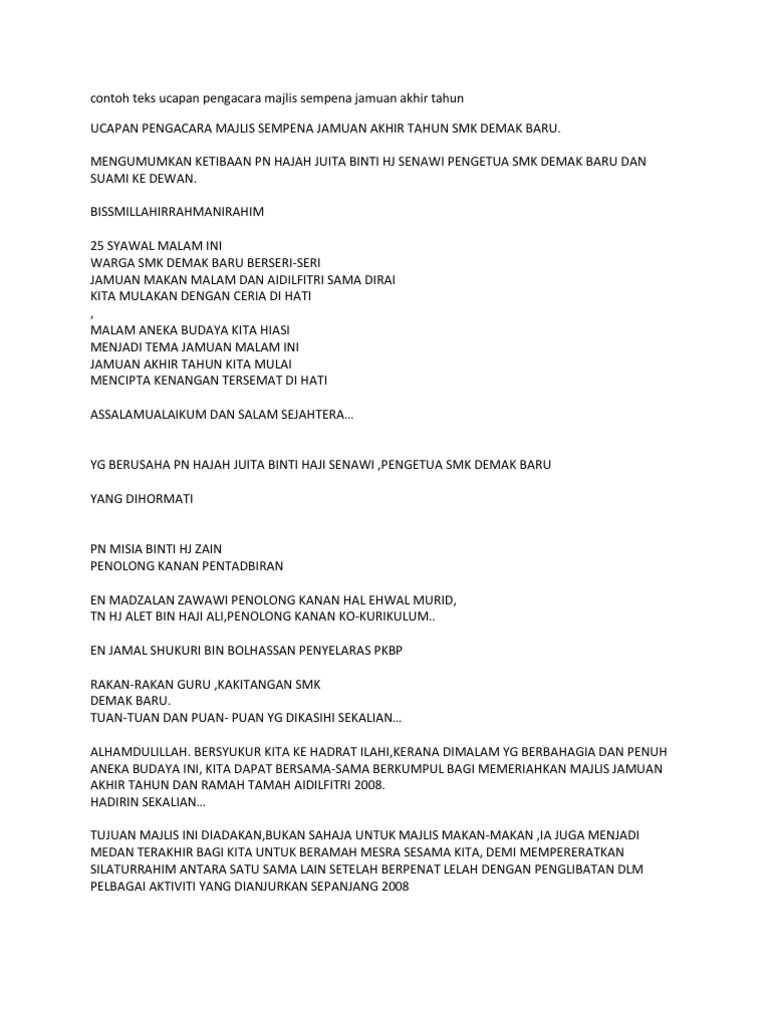 Teks Ucapan Majlis Jamuan Akhir Tahun Smkj Edit Docx