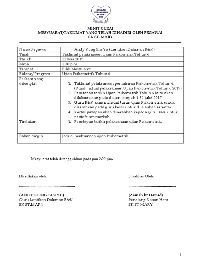 Contoh Minit Curai 1