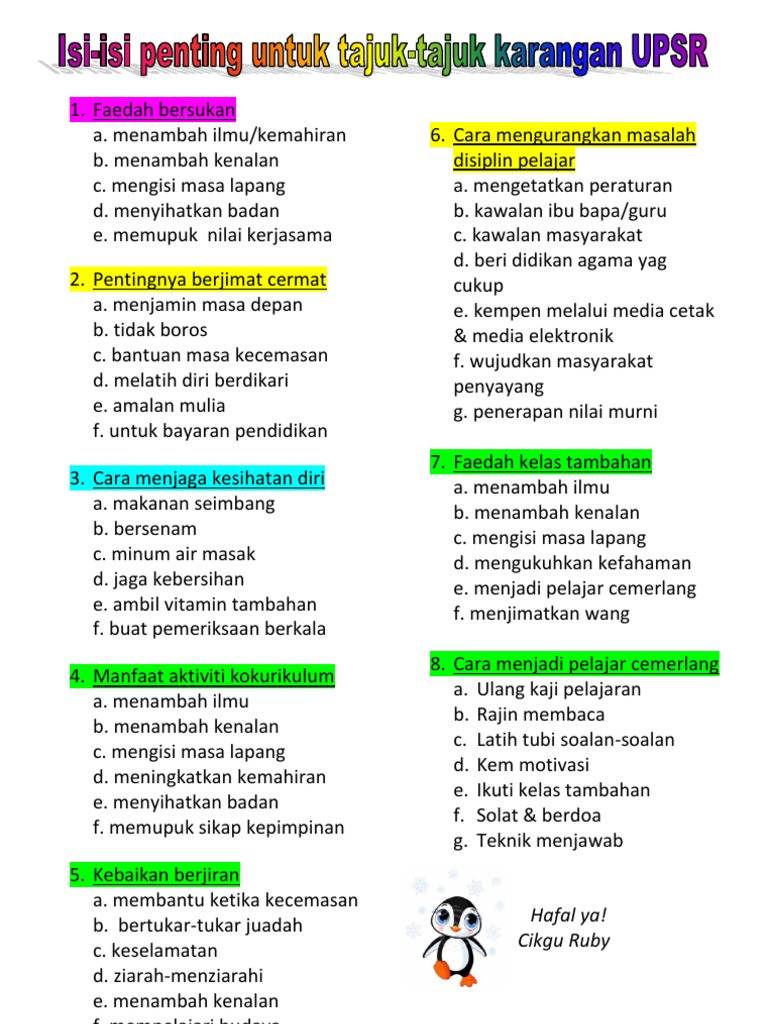 Isi Isi Penting Penulisan Upsr
