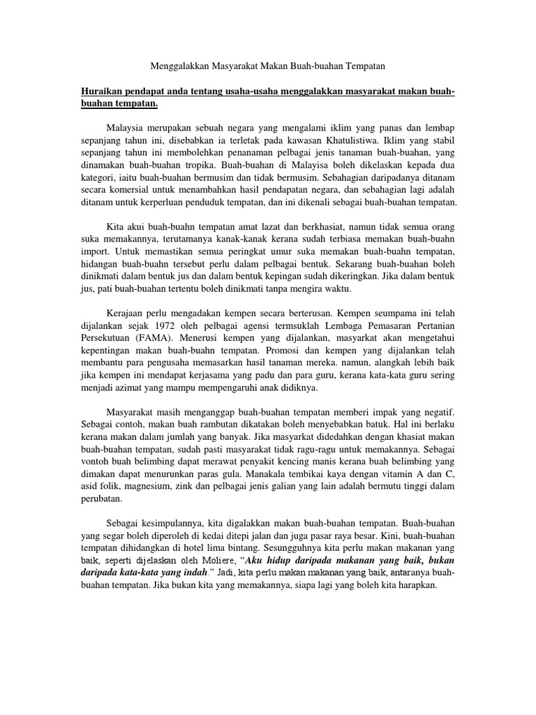 Contoh Karangan Kelebihan Dan Kebaikan Buah Buahan Tempatan Versi 2019 Soalan Lisan Karangan Rangsangan Spm