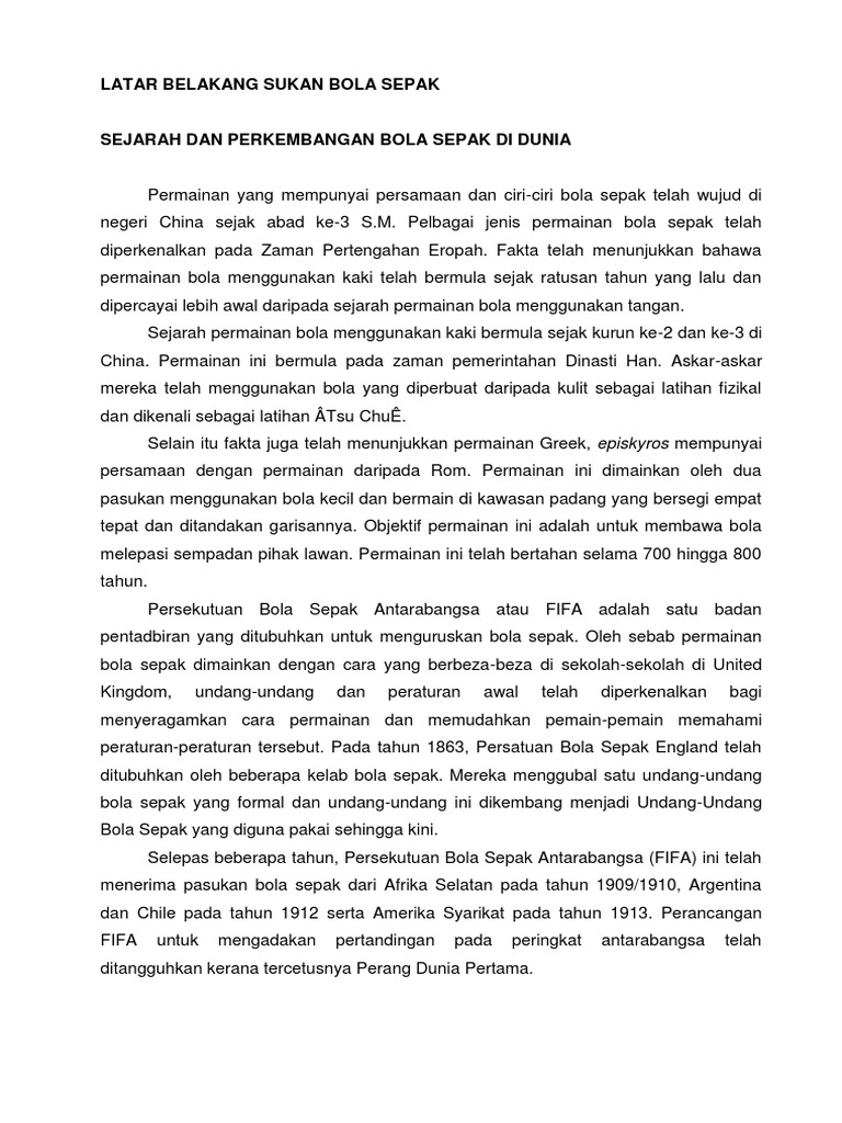 Sejarah Dan Perkembangan Bola Sepak