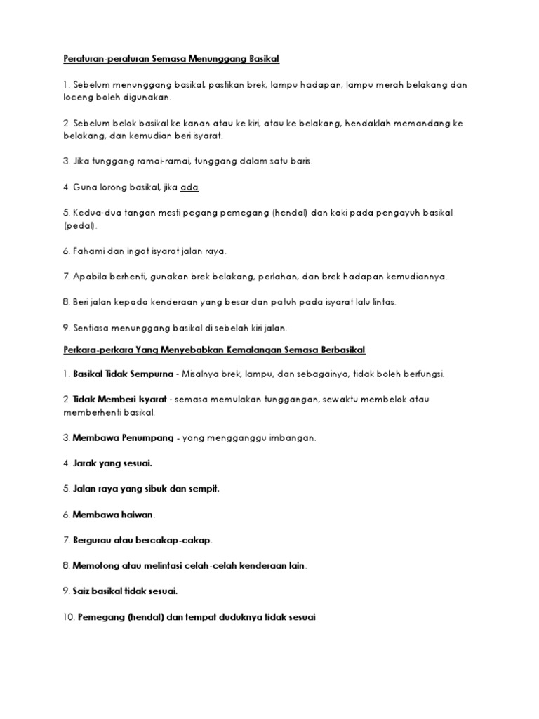 Keselamatan Jalan Raya Semasa Menunggang Basikal