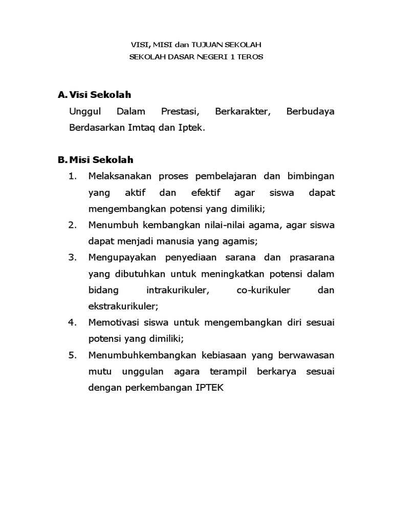 Visi Dan Misi Sekolah Dasar Berkarakter