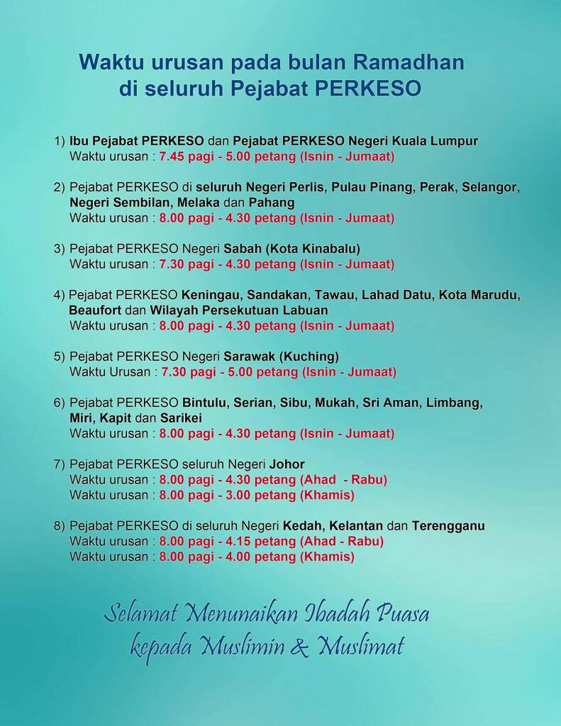 Budak Bakong Waktu Operasi Pejabat Perkeso Berubah Sempena Bulan Puasa